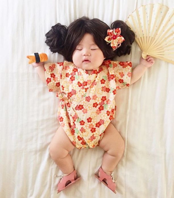 媽咪 Laura Izumikawa 同時也是攝影師,趁著寶貝女兒 Joey 午睡時幫她穿上各種服裝拍照,老人家口中的 “sleep when the baby sleeps” 對她來說似乎不適用,拍下有趣的照片也是紀錄孩子成長的一種方式。