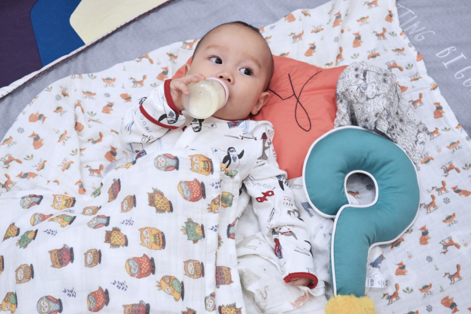 如果要當嬰兒包巾使用的話可以挑選大條的紗布巾,對角摺成三角形後再將嬰兒包覆在內,對0~4個月的新生兒來說,嬰兒包巾除了能幫寶寶保暖,將小手小腳包覆在內,彷彿還待在媽媽的子宮裡,也可以避免晚上夜驚中斷睡眠。