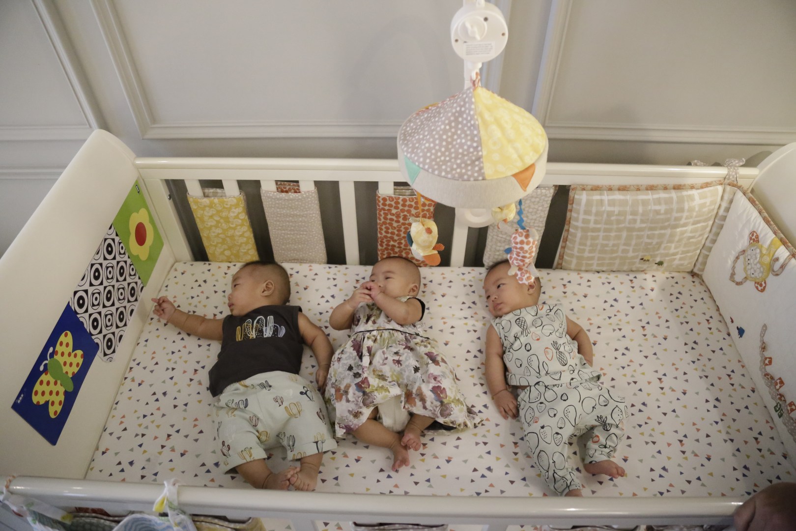 但是剛開始也不知道是餓了還是要換尿布,怎麼安撫都沒用,爸媽的睡眠時間都不到 2 小時,除了體力上是挑戰,心情也受到影響。現在就比較讀得懂孩子的需求,像大哥緯緯不喜歡大的奶嘴,太大就會一直推開,現在則是三個孩子裡面比較能睡過夜的;妹妹雖然愛哭,但喜歡跟人互動,看到人就會笑。孩子 4 個月後情況開始好轉,也比較好照顧了。