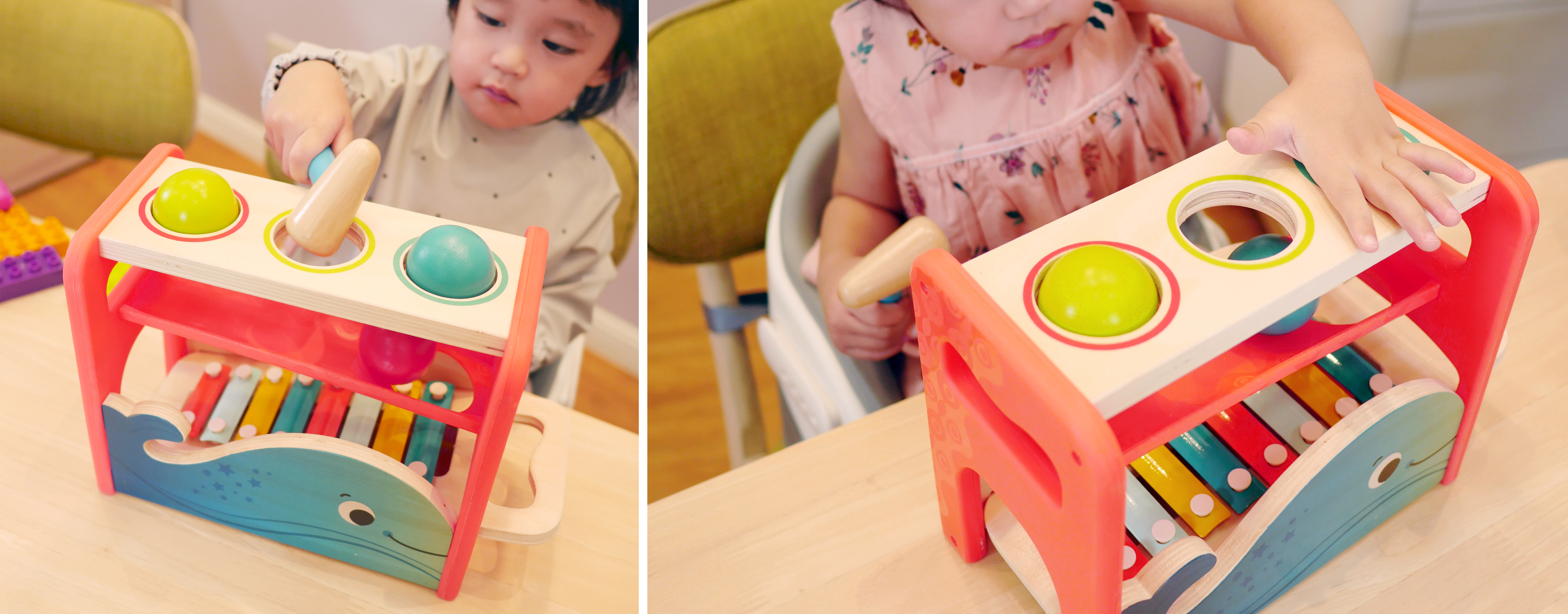 美國感統玩具品牌 B. toys 及 battat 因為清楚寶寶的快樂來源,推出許多不同款式的敲擊玩具,期望讓寶寶透過遊戲累積經驗,獲得樂趣和滿足。