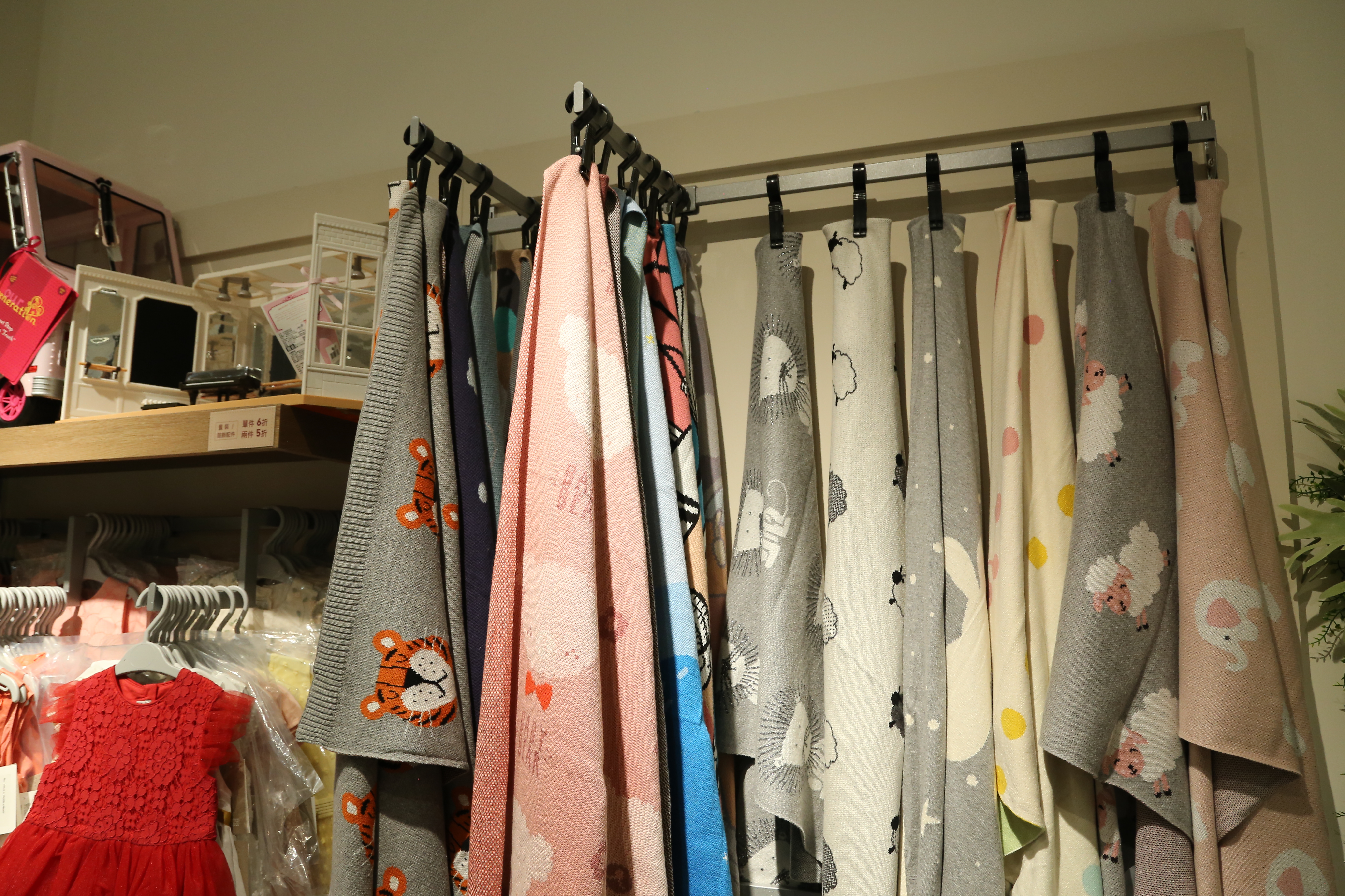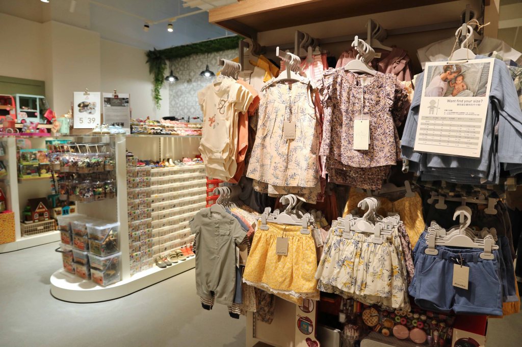 一整個牆面的童裝區,走進這裡想不淪陷都很難啊,三井 OUTLET 以非當季的童裝服飾為主,品牌包括英倫風的 Mamas&Papas 和簡約北歐風的 Brands4kids,一年四季都有不同系列特色的主題、圖案款式,小洋裝、套裝、針織外套、短裙、吊帶褲、連身兔裝、髮帶套頭帽…等,尺寸最大是到 3-4y,實際可選擇的尺寸以架上為準,售完為止。童裝本月是單件 6 折,兩件以上 5 折,真的很好買!