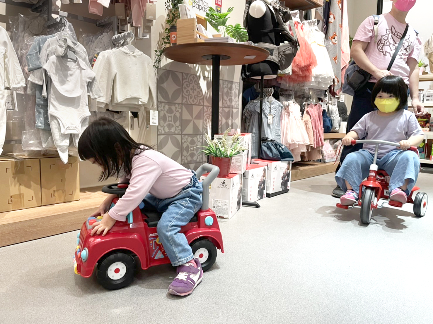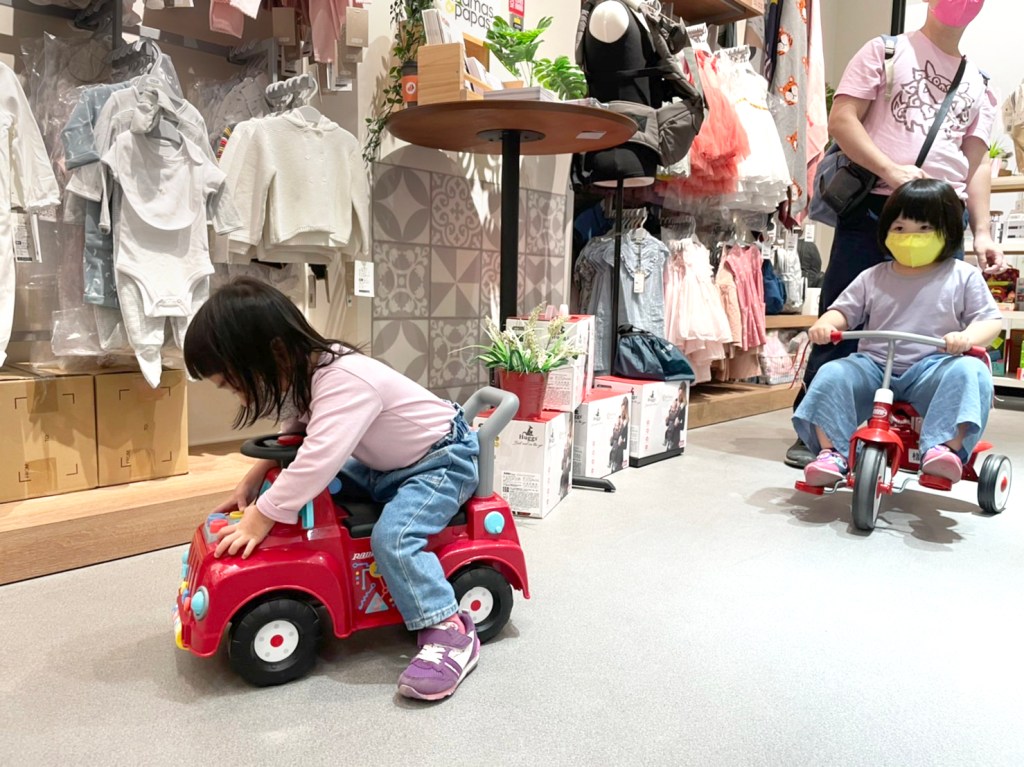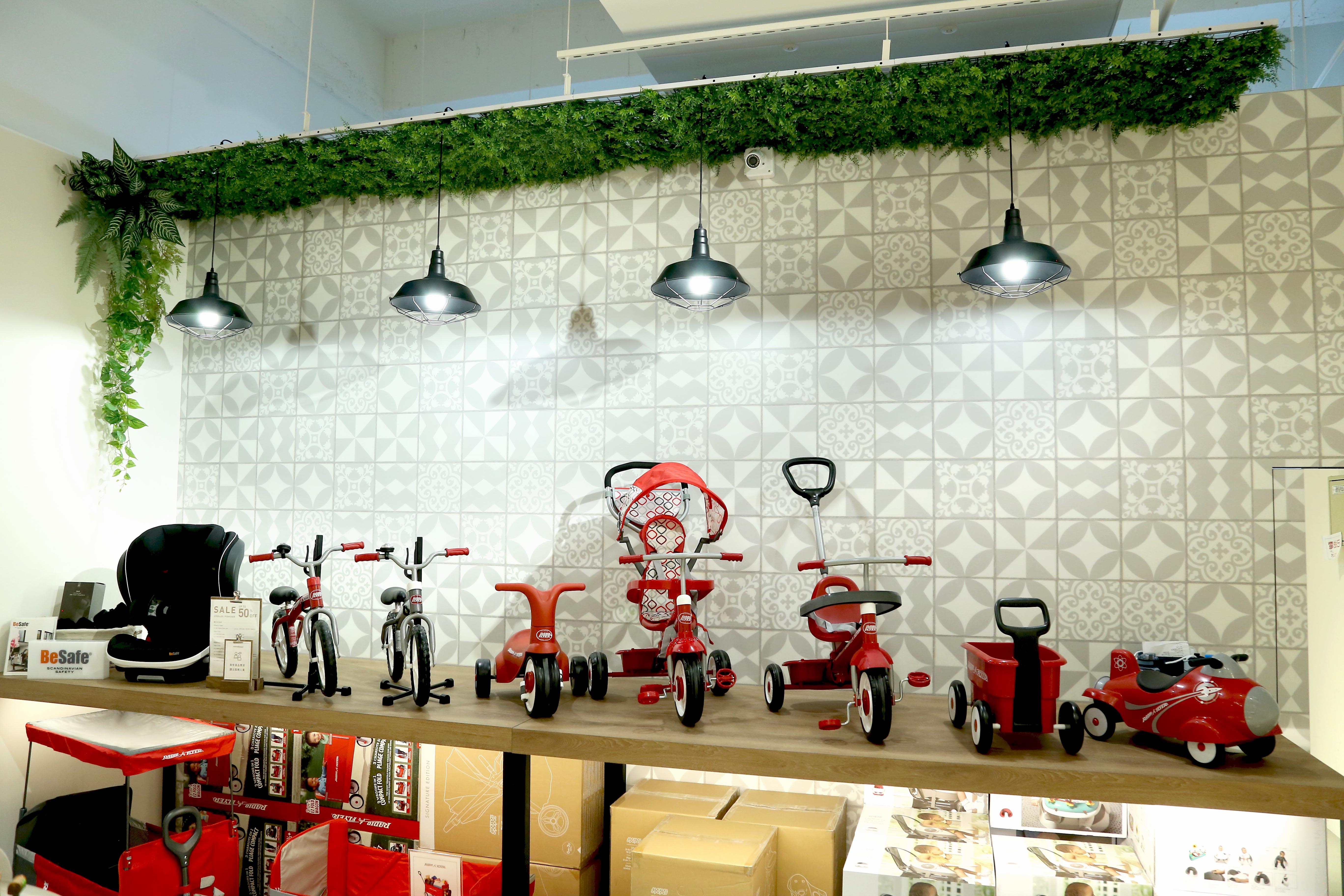 鮮紅色身影承載著各式各樣想像和期許,現場也有小小孩們最愛的 Radio Flyer 系列騎乘玩具,OUTLET 最新款『觀測號二合一滑步學步車』車身配置多達 20 種探索遊戲,鑰匙孔、排檔桿、油箱蓋,模擬汽車細節,引擎蓋逗趣聲光按鈕增加遊戲樂趣,推行或滑行隨喜好變換,陪著寶寶一步一步踏出自信與平衡感!