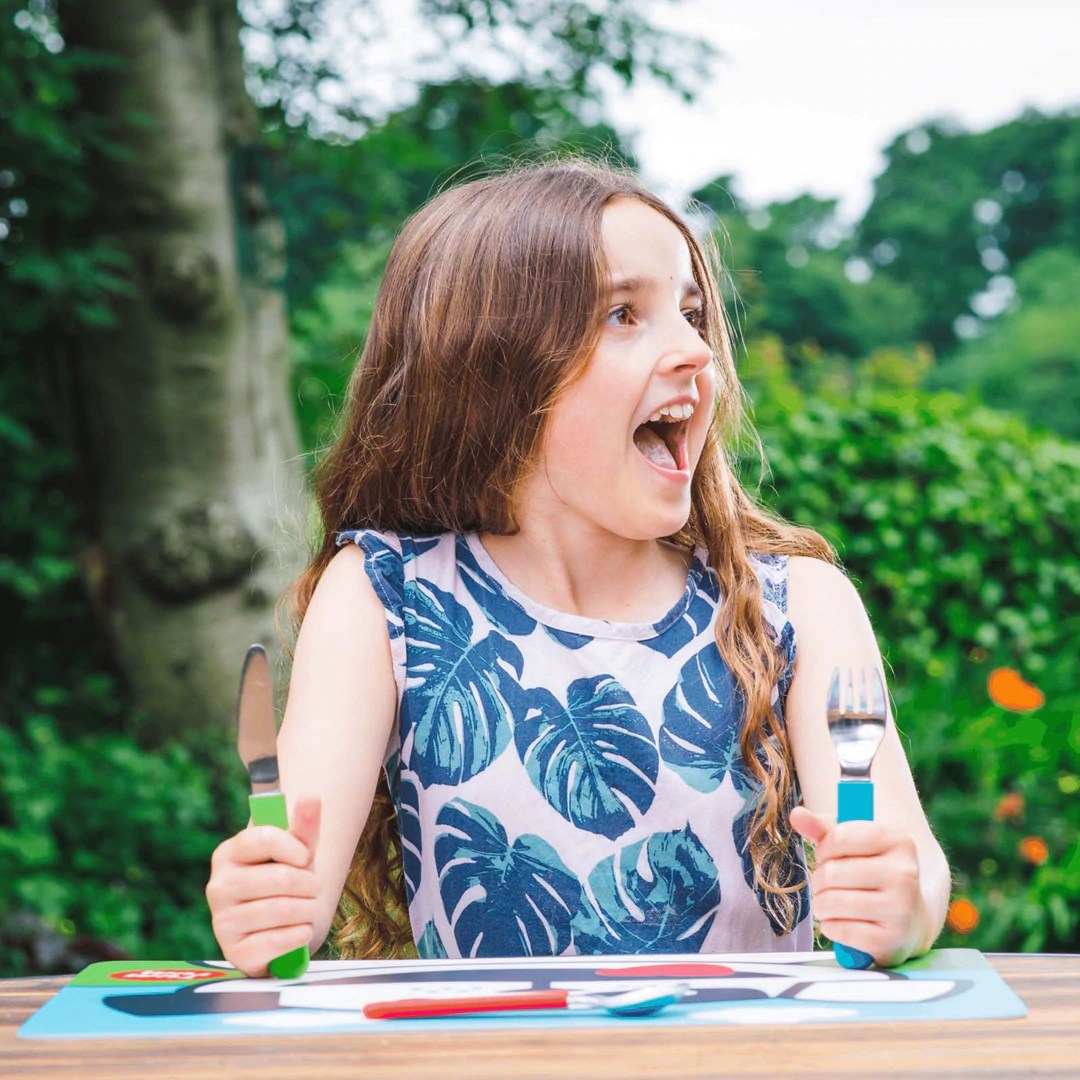先生 Andrew 和我一起創立品牌,我們有兩個現在正值青春期的女兒,Andrew 和我曾在雪菲爾的餐具產業工作,雪菲爾是英國的第五大城市,以不鏽鋼和繽紛的餐具發展聞名,所以我們對大人用的餐具用品設計十分了解,直到有了孩子,替她們買了第一套餐具,因為她們從小就是非常獨立的女孩,想自己主導進食。