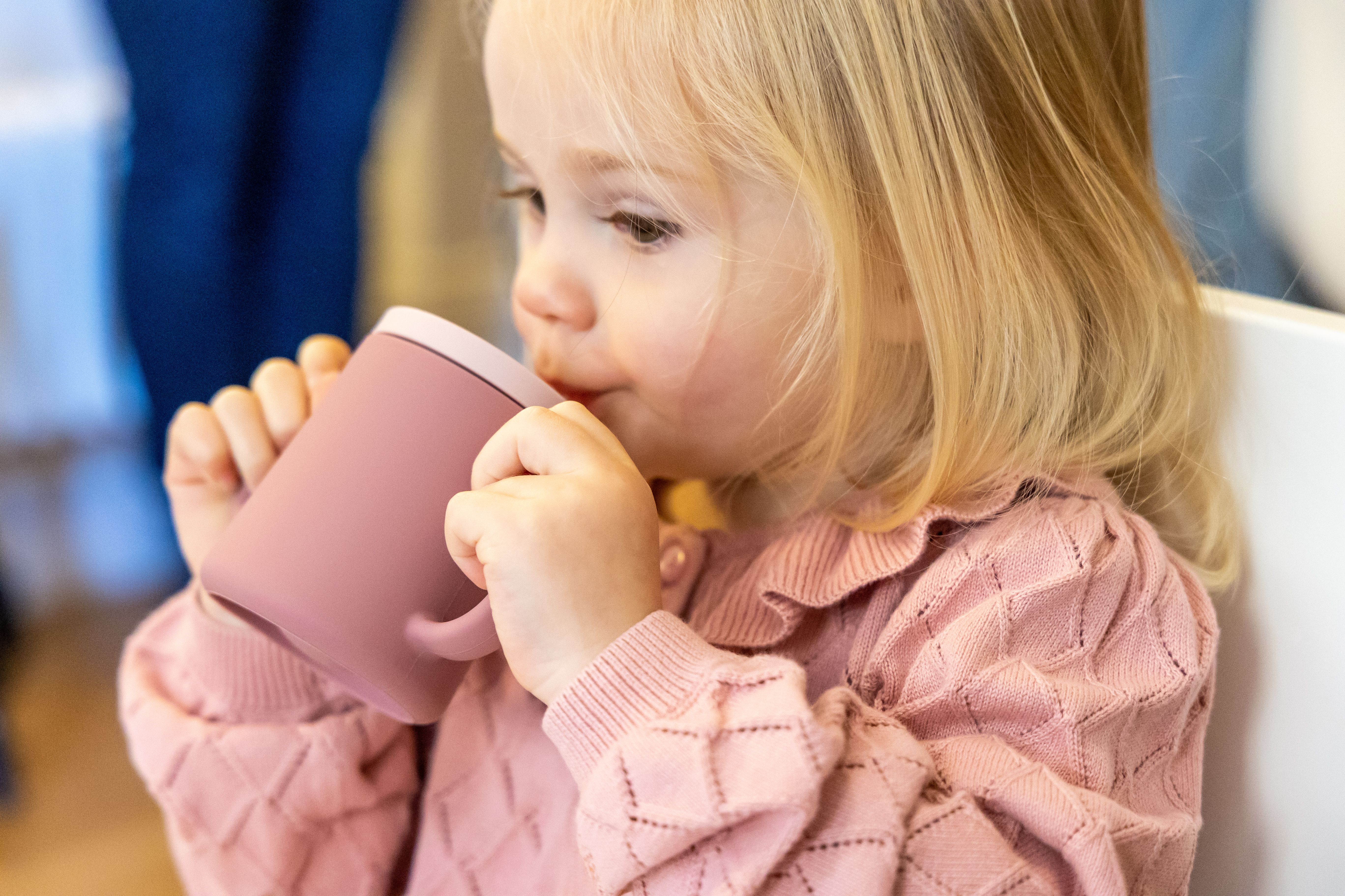 再之後,可以將上蓋完全移除,變成完全無蓋的水杯。底座較寬,讓它可以穩穩立在桌上,杯身兩側的握把,讓孩子可以輕鬆提取;可以清楚看清水杯內部水量,到這個時期孩子已經成長,能輕鬆使用無蓋的杯子飲水。