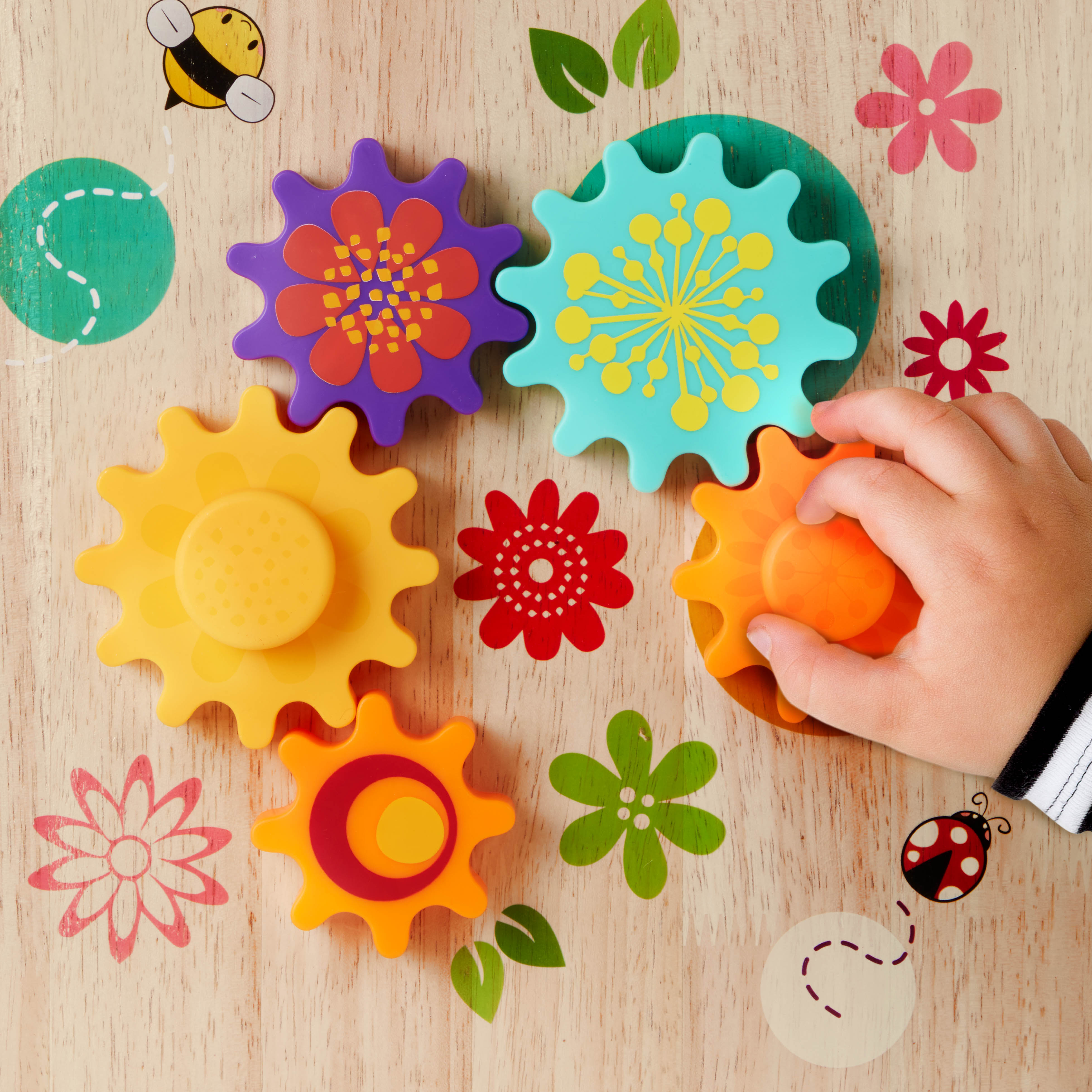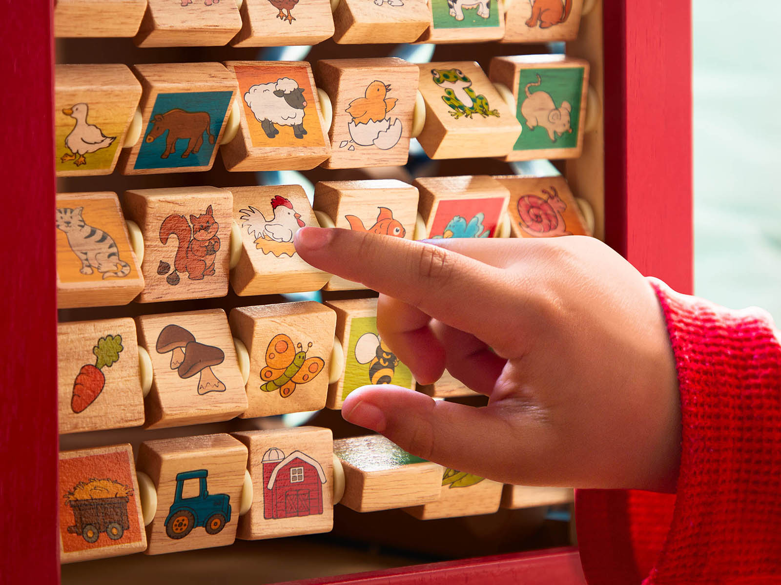 手是我們不可或缺的生活工具,不論拿筆、用餐、擰毛巾、開瓶蓋,大大小小的事情都是透過雙手執行。手指一推就翻動的木牌和木門最容易讓寶寶獲得成就感,超大轉盤使用一隻手指、整個手掌、左右手合作轉動時能發揮的力量都不同,轉速也越來越快;遊戲過程既是行為探索也是能力培養。