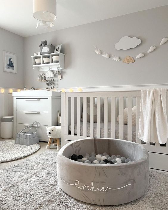 嬰兒 2 個月前只能辨別 20~30 公分內的輪廓,超過可視距離的世界在寶寶眼中是模糊的,像黑白這種對比度高的色系看得比較清楚。中性灰、不顯眼的色調也逐漸成為許多嬰兒房佈置的選擇,除了視覺上更柔和、讓人感到平靜放鬆,也比較不容易因為濃重色彩造成視覺疲乏,隔幾年後又想重新裝潢佈置。